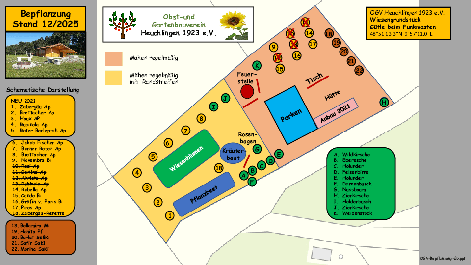 Eine kleine Orientierungshilfe über das Gütle und den einzelnen eingesetzten Bäumen und Pflanzen.